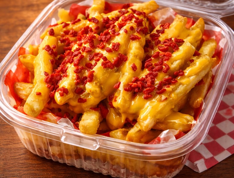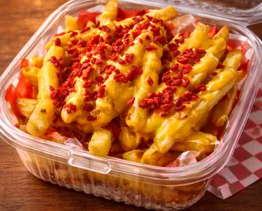 Papas frescas y fritas al punto justo para máxima textura bañadas en nuestro aderezo cheese & bacon.